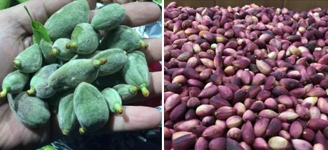 Izquierda: almendras frescas, derecha: pistachos frescos