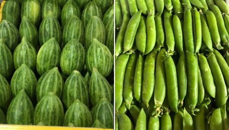 Izquierda: el pepino ovalado es un vegetal de fruto muy popular en la cocina oriental. Derecha: las judías verdes y otras legumbres se encuentran entre los alimentos básicos en Arabia.