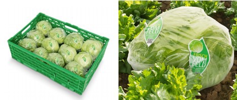 La lechuga Iceberg se vende a mayoristas en Suiza bajo la marca propia Frisch vom Feld (‘Frescas del campo’).
