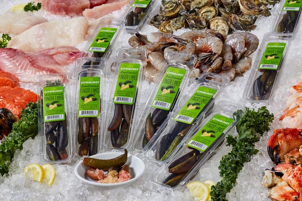 Las limas dedo Citriburst se comercializan junto a los mariscos.