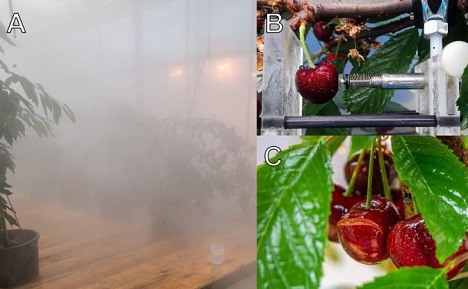 El rajado provocado por la lluvia limita la producción de cerezas dulces en todo el mundo. Con frecuencia, el rajado se evalúa en ensayos de laboratorio, en los que la fruta desprendida del árbol se sumerge en agua. Un equipo de científicos de la Universidad Leibniz de Hannover ha comparado el rajado de la fruta sumergida en agua con el de la fruta que permanece adherida al árbol, pero expuesta a una lluvia simulada, o el de fruta desprendida del árbol colocada en una jaula de alambre entre las copas y expuesta a lluvia simulada. Para el estudio, se determinó la absorción de agua y el rajado en la fruta desprendida del árbol y todavía unida a este.
