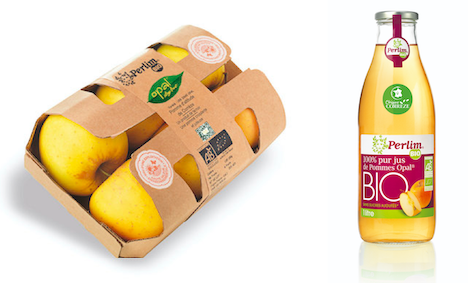 La totalidad de las 150 toneladas de Opal ecológica se vendieron entre febrero y marzo. Acaba de firmarse el contrato de exclusividad, la cosecha se comercializará a partir del año que viene con el logo representado por una pequeña hoja verde, que simboliza que la alianza pertenece al club Opal. "Hemos tenido grandes respuestas. Es una manzana con un muy buen olor y que gusta mucho. Además, la Opal tiene un lugar perfecto en el mercado, donde se quiere cada vez más una vuelta a la autenticidad", detalla Béatrice. La producción ecológica de la alianza Perlim Meylim se envasa en una bandeja hecha de cartón al 100%, mayormente procedente del sector del reciclaje y producido de forma local, conforme a los valores de la empresa.