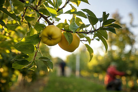 Mientras otros eligen convertir sus viejos huertos de Golden a la agricultura ecológica, la alianza Perlim Meylim ha centrado su desarrollo ecológico en dos variedades específicas. Una variedad bicolor muy prometedora, actualmente en fase de experimentación, y la Opal de color amarillo, para la que la empresa ha obtenido la producción en exclusividad en el Lemosín. "Las dos se distinguen por sus cualidades gustativas. La Opal cuenta con numerosos aromas y es visualmente atractiva, conservando su aspecto rústico y natural, que se inscribe perfectamente en los valores de la empresa. También es resistente a la sarna del manzano, criterio que se ha demostrado clave en la elección de las variedades. Se trata de manzanas capaces de crecer en zonas elevadas", explica Luce Savian, ingeniero técnico de huertos en la alianza.