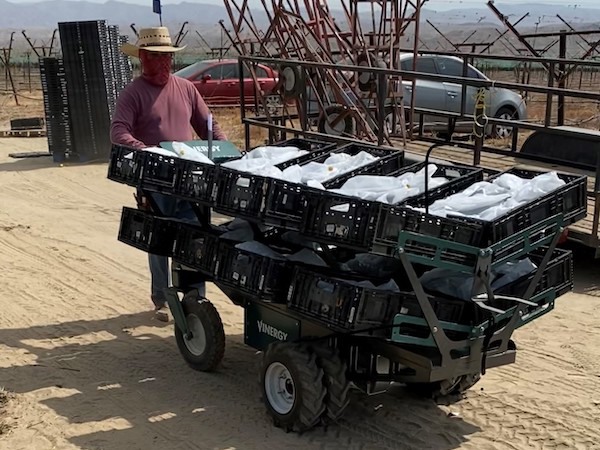 El carro Vinergy Cart y la carretilla Vinergy Wheelbarrow de Vinergy, Inc. son herramientas eléctricas recargables que aumentan la cantidad de tiempo que las uvas pueden ser cosechadas, reduciendo significativamente la parte de la cosecha que más tiempo consume, que requiere más mano de obra y que es más arriesgada: el transporte de la fruta desde la vid hasta el final de la hilera.