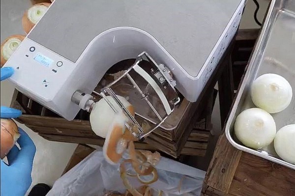 "Las cadenas de restaurantes que se preocupan por la frescura suelen tener que contratar más trabajadores para hacer ese trabajo manualmente. Un cliente potencial (una hamburguesería de EE. UU.) nos dice que tienen a 5 personas pelando cebollas para hacer hamburguesas frescas".