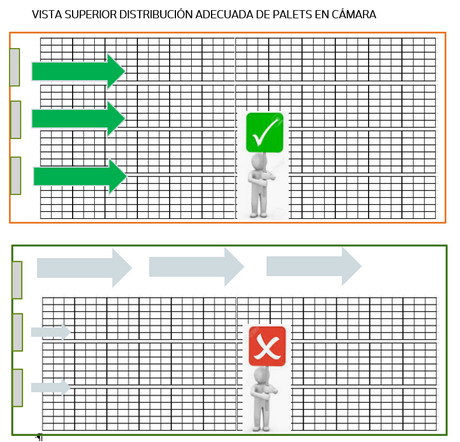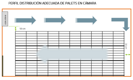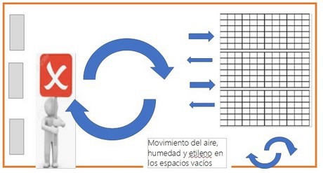 Cuando se inicia el llenado de las cámaras se debe hacer una distribución de los palets en el espacio evitando hacer una acumulación cerrada en un extremo. De esta forma se reparte el aire y sus componentes en forma más homogénea sobre la fruta.