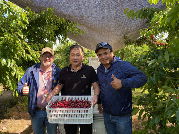 "Nuestro huerto de cerezos de Chile cubre una superficie de más de 500 hectáreas y la cosecha superará la del año pasado, pero no por mucho. Empezaremos a enviar cerezas por transporte aéreo a China en noviembre y luego, cuando haya más volúmenes disponibles, cambiaremos al transporte marítimo. El último envío llegará a China a finales de febrero del año que viene", dice Xie Jinshan, director de la empresa china Gold Anda Agricultural Science and Technology Development Co., Ltd.