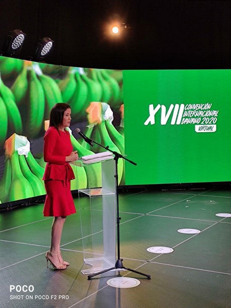 Marianela Ubilla, presidenta de la AEBE, brindó la bienvenida a los asistentes y señaló: “Somos un sector con iniciativa y que afronta los desafíos con unidad; hoy estamos celebrando la XVII Convención en nuestra historia y la primera virtual. La comercialización de nuestro banano representa el 30% de la exportación mundial, pese a los retos de este año continuamos liderando esa oferta; con cierre a agosto tenemos un crecimiento del 9,79% que corresponde a 262 millones de cajas; esto refleja el esfuerzo, conocimiento y dedicación de un sector que innova permanentemente”.