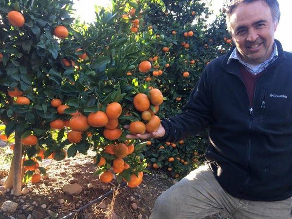 René Allende, un productor chileno de Trucco Inc., muestra la cosecha de mandarinas