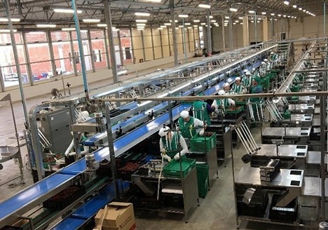 La línea de procesamiento que, a plena capacidad, emplea a hasta 56 personas (imagen tomada antes de la emergencia de COVID-19).