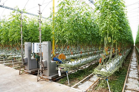 "Para controlar la gestión integral de los procesos de cultivo se utiliza un software que monitorea todo el sistema, desde la fertirrigación hasta la apertura y cierre de las ventanas laterales y los techos. Contamos con un sistema de calefacción formado por tubos a través de los cuales circula agua caliente. Además, también sirven como vías para montacargas", explica el joven emprendedor.
