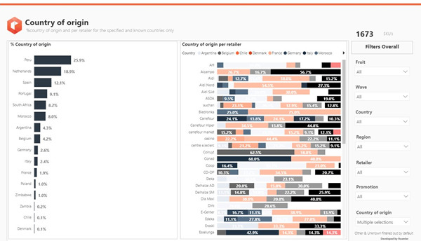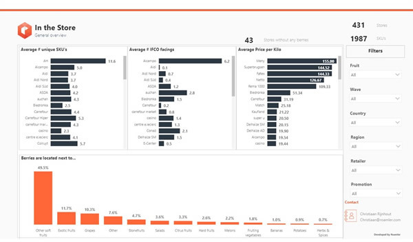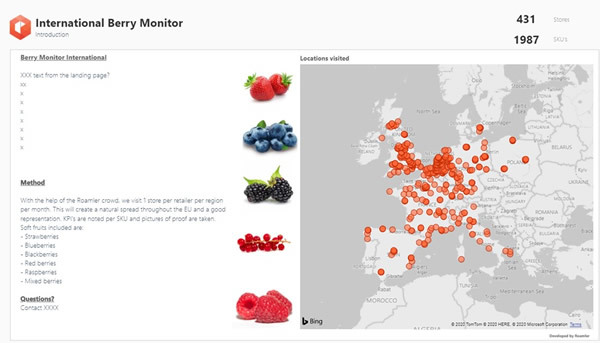 "Proporcionamos a los suscriptores informes detallados sobre precios y promociones, incluidas fotos de las etiquetas de precio y de los países de origen de cada producto. La herramienta Power BI brinda información sobre el cambio de las temporadas, ya que hace un seguimiento de los proveedores y de los países de origen en tiempo real. Todas las fotos online son fáciles de ver y descargar", dice Rijnhout. El Berry Monitor comenzará oficialmente el 1 de enero de 2021, pero para entonces ya se habrán llevado a cabo las dos primeras rondas de visitas a 600 sucursales de supermercados europeos, incluidos Aldi, Lidl, Tesco, Carrefour y E-Leclerc.