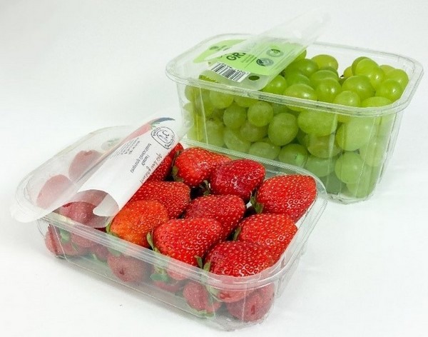 La gama de productos termosellados se ha diversificado en muchos formatos como el cubo (Mod. BK - ver foto arriba), un envase monomaterial de rPET con asa integrada y tapa opcional; pero la gama se extiende también a bandejas de 1 o 2 kg (Mod. T - ver foto arriba) y un montón de tarrinas especialmente diseñadas para berries, cerezas, tomates y otros productos pequeños.