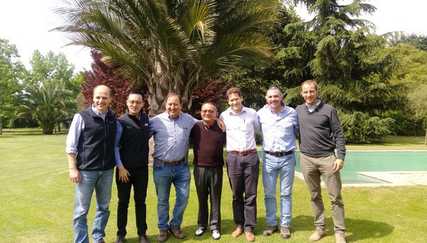 Liu Jinchuan (en el centro), presidente del consejo de Kingo Fruit Trade, con proveedores