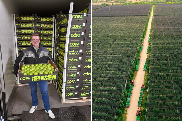 El gerente de cuentas Konrad Wojda está muy satisfecho con el primer envío. "Estoy muy contento con la primera entrega. Las manzanas son muy hermosas, duras y de color verde brillante. Además, el retractilado de los palés es perfecto".