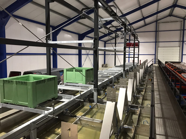 Ya han llegado las semanas de más trabajo para la empresa holandesa Van de Water Fruit Group, que actualmente está ocupada con la clasificación de las peras Sweet Sensation. La fruta se clasifica en una máquina de Perfect de dos conjuntos de cuatro líneas provista de hardware y software de Ellips, con la cual se pueden clasificar dos variedades de peras simultáneamente. La empresa clasificadora dispone de una instalación de Burg Machinefabriek para la alimentación de la máquina con quince canales de agua que próximamente serán controlados dinámicamente. La empresa también invirtió en dos instalaciones de tratamiento de agua de Burg en 2018, una con un filtro de láminas y otra con un filtro para la arena con luz ultravioleta. Esta máquina limpia los canales de agua y la máquina de envases pequeños.