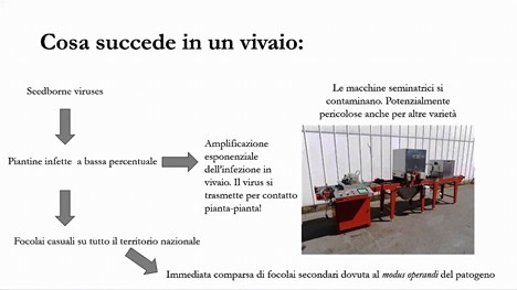 El webinar (que duró unas tres horas) contó también con las intervenciones programadas de Stefano Panno, investigador de la Universidad de Palermo, quien habló sobre "Diagnóstico precoz y diagnóstico de campo: herramientas indispensables para la contención de enfermedades virales", y Domenico Carta, gerente a cargo del servicio fitosanitario y antifalsificación de la Región Siciliana. Las conclusiones quedaron a cargo de Dario Cartabellotta, director general de la Consejería Regional de Agricultura.