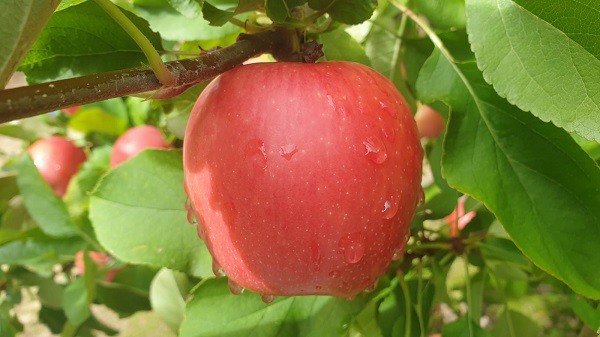 Una manzana Kanzi en una finca de Bo-Swaarmoed, a las afueras de Ceres, esta semana (foto de De Kock Hamman, Ceres Fruit Growers)
