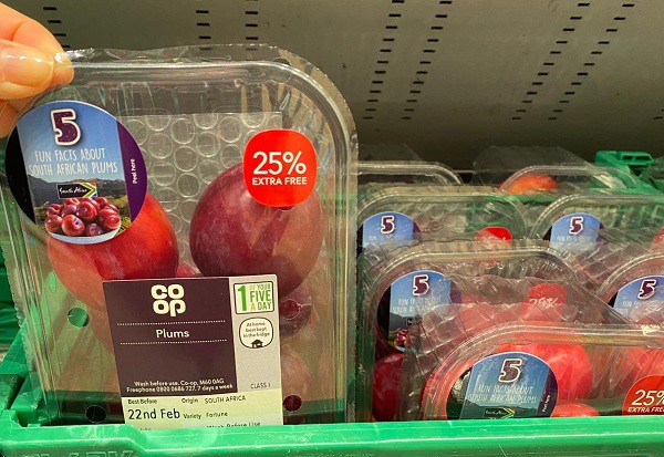 Ciruelas sudafricanas en un supermercado del Reino Unido el mes pasado (foto: Hortgro)