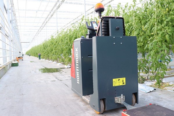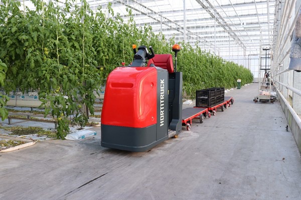 La última herramienta de logística interna para invernaderos desarrollada por FPHU Maryniaczyk es el Hortitruck, un tractor de remolque de fácil manejo con capacidad para mover hasta 3 toneladas.