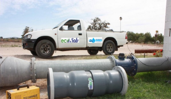 El dispositivo de mejora del agua ecoSolv de 43 ¼" y 120 kg se instaló el 9 de marzo de 2021 en Malmsbury, Sudáfrica, en una explotación agrícola mixta de 180 hectáreas. Los agricultores lidiaban con graves problemas de algas y calcificación, y después de 3 semanas se han reducido los bloqueos de algas en los aspersores y en líneas de pivote. Con el dispositivo de mejora del agua ecoSolv los aspersores pueden pulverizar más lejos con mayor facilidad, mejorando la humectabilidad del suelo.