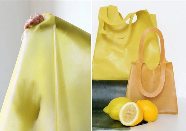La pectina es un polisacárido vegetal derivado de las pieles de la fruta, mientras que el residuo de producción celulósica deriva de la celulosa, la principal pared celular de las plantas. Cuando estos compuestos orgánicos se combinan para crear la Sonnet155, forman un tejido sostenible, fuerte y gelatinoso que se puede disolver con el tiempo con un uso constante. El material parece elástico, pero también tiene el aspecto y el tacto del cuero.