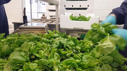 Valentina Melella añade: "Producimos albahaca cortada y en maceta. El producto cortado se cultiva con un sistema flotante, mientras que las macetas descansan sobre una alfombra con subirrigación. La línea fortificada con selenio se vende como producto cortado, así como la línea baja en níquel".