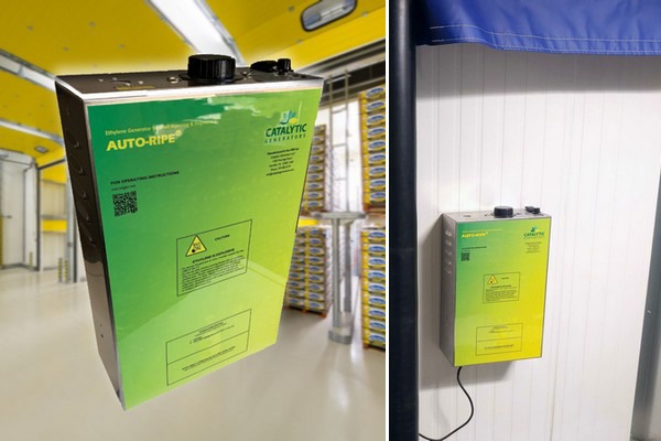 El mes pasado, Catalytic Generators amplió su colección de maduradores de etileno con el lanzamiento de uno nuevo llamado Auto-Ripe® Generator 2021. "Reconocimos la necesidad de un almacenamiento vertical, montado en la pared, del concentrado de maduración, así como de la producción de etileno con un generador que se ajustara mejor a las cámaras de maduración estrechas", dice Greg Akins, presidente y director general de Catalytic Generators. Con solo 14,2 cm de profundidad, el nuevo Auto-Ripe es una solución ideal para cámaras de maduración estrechas. "El diseño estrecho ofrece a los maduradores la tranquilidad de que las carretillas elevadoras y otros equipos mecánicos puedan entrar y salir de las cámaras de maduración sin problema", añade Akins.
