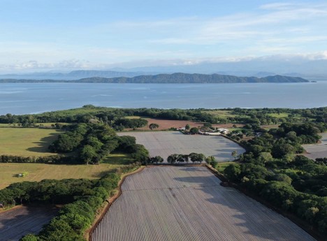 La finca de melones amarillos Cabo Blanco, justo a las orillas del océano Pacífico, durante la plantación.