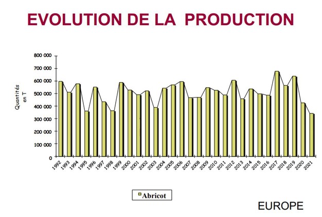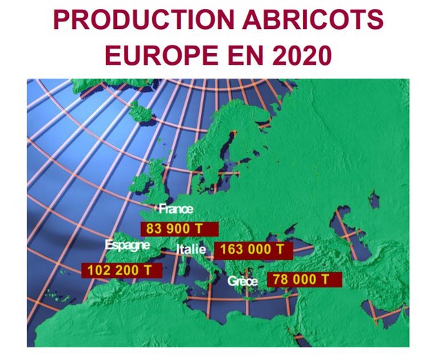 Fue un año complicado para muchos países debido a los problemas meteorológicos (falta de frío en invierno, heladas, lluvias y granizo) que afectaron a la mayor parte de las cuencas productoras.Producción de albaricoques en Europa en 2020