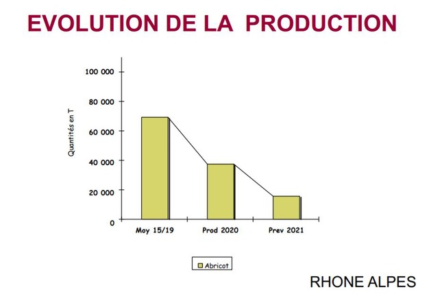 Para Nathalie Bonnet, no obstante, hay que mantener la prudencia con las previsiones de cosecha para el mes de junio, que podrían verse menos afectadas, y, de igual modo, ha señalado la necesidad de mejorar los medios de lucha contra el frío y el pedrisco ante el cambio climático, que podría provocar unas "falsas primaveras" que hagan que los árboles se vuelvan más vulnerables en caso de heladas.Evolución de la producción en Ródano-Alpes