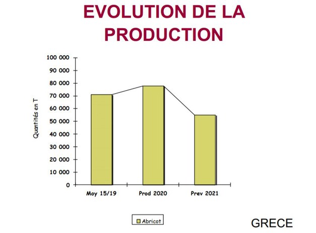 En Grecia, se han registrado muchos daños debido a las heladas, por lo que se espera una producción un 50% menor, es decir, 55.000 toneladas con respecto a las 110.000-120.000 de un año normal. Cabe señalar evoluciones en los huertos, con un fuerte aumento de los albaricoqueros cada año (pero en descenso en 2021): diversificación de cultivos con nuevas variedades y variedades tardías, principalmente, y una tendencia hacia las variedades autofértiles, que son más productivas y tienen un mejor comportamiento.