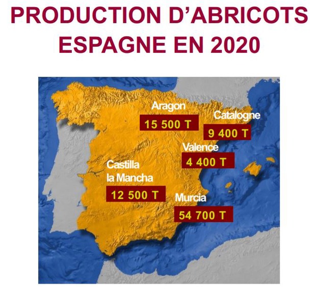 Campaña 2020 positiva pese a las heladas, con resultados superiores a los de 2019/2018. En Murcia, primera comunidad autónoma española en producción de albaricoques, se observó una fuerte evolución en el campo de la renovación varietal, con una desaparición paulatina de las variedades destinadas a la industria en beneficio de las destinadas a la venta en fresco. También evolucionó la producción en el norte, con la plantación de nuevas fincas de variedades tardías en Cataluña y Aragón para suceder a la producción murciana.