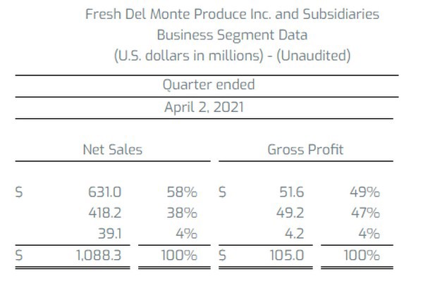 Fresh Del Monte Produce Inc. ha publicado los resultados económicos del primer trimestre, finalizado el 2 de abril de 2021.