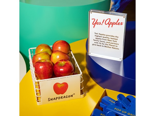 "Yes! Apples está encantada de formar parte de Pop Up Grocer como uno de los únicos productos frescos presentados", dice Tenley Fitzgerald, vicepresidenta de marketing de Yes! Apples. "Entregamos manzanas a las tiendas de comestibles de todo el país. Vemos esta iniciativa como una vía para presentar a los consumidores variedades que quizá no conozcan, como la Koru, un cruce de las variedades Braeburn y Fuji, y la SnapDragon, exclusiva de Nueva York, que obtiene su textura de la Honeycrisp y tiene un sabor dulce y ácido".