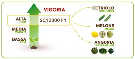 SC12000 F1 es un portainjerto vigoroso, adecuado para suelos cansados. Favorece el desarrollo de una excelente cobertura foliar y es apto para todo tipo de sandías. El sistema radicular está bien desarrollado y el hipocótilo está bien erecto, lo que facilita el injerto. Además, la uniformidad de la planta asegura un fácil manejo en el vivero. La principal característica de este portainjerto es la baja transmisión del sabor a calabaza, por lo que el producto final tiene el sabor típico y peculiar de la propia variedad de sandía.