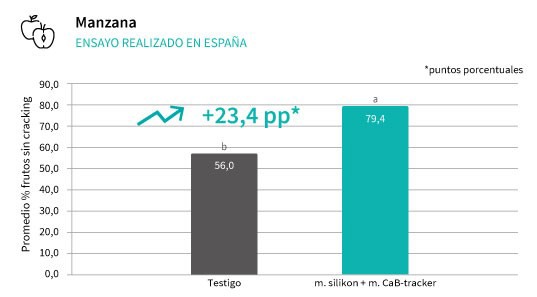 En manzana se logra una reducción notable de las manzanas con cracking, aumentando los frutos comercializables