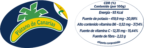 Con esta iniciativa, Plátano de Canarias se convierte así en la primera fruta que incorpora un etiquetado con información nutricional y además en formato de etiquetado 100% compostable y biodegradable.