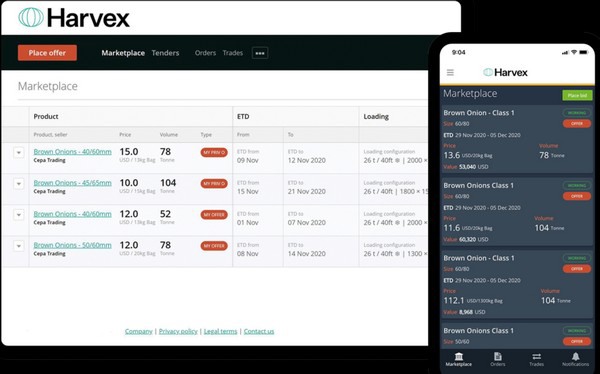 La plataforma de Harvex permite a los vendedores gestionar todo su flujo comercial en un único lugar; desde ofrecer un producto hasta negociar el comercio y gestionar las entregas. La empresa afirma que esto ha reducido el proceso comercial de 40 puntos de contacto a solo 20, lo que se traduce en un ahorro significativo en horas de mano de obra para las ventas y la documentación. La plataforma proporciona datos de precios actualizados basados en el comercio en vivo y se está convirtiendo rápidamente en un precio de referencia para compradores y vendedores.