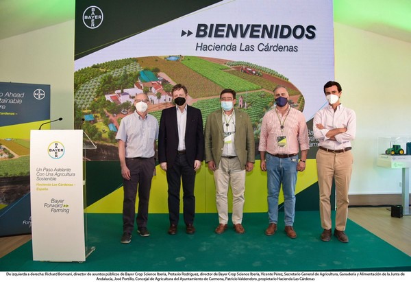 Bayer ha presentado en Carmona (Sevilla) la Hacienda Las Cárdenas como la primera finca española que entra a formar parte del programa internacional Bayer ForwardFarming (BFF), una red integrada por 24 explotaciones agrícolas en 12 países de todo el mundo con la que se quieren promover prácticas sostenibles en la agricultura. Al acto han asistido el secretario general de Agricultura, Ganadería y Alimentación de la Junta de Andalucía, Vicente Pérez, y el director de Bayer CropScience Iberia, Protasio Rodríguez, y representantes de las principales asociaciones agrarias (ALAS, ASAJA, COAG, UPA y Cooperativas Agroalimentarias).