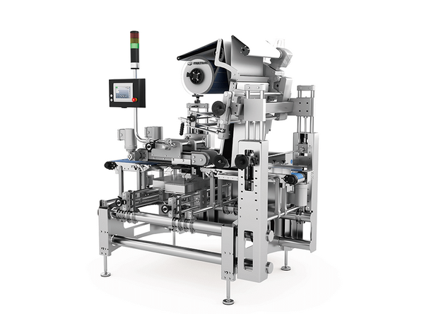 El marcado y sellado de bandejas de cartón con etiquetas autoadhesivas de papel tienen lugar automáticamente según van pasando y la alimentación de productos se puede realizar manualmente o por medio de un módulo antepuesto. En comparación con las soluciones de envasado manual, esto supone un gran ahorro de costes y una mayor tasa de ciclos. La L 310 arroja un rendimiento de hasta 90 envases por minuto. Se pueden procesar etiquetas con un ancho de hasta 500 mm y un peso de hasta 170 g/m² y, si es necesario, también se puede aplicar por abajo una etiqueta adicional en el envase durante la misma pasada.