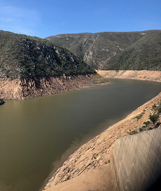 La presa de Kouga (a la derecha) está a un 4,3% de su capacidad, y apenas se extrae un 0,05% de su agua cada día para todos sus usuarios. Aproximadamente la mitad de los agricultores de la zona siempre han tenido acceso al agua de baja calidad del río Gamtoos, que es lo que ha permitido a muchos de ellos superar años de sequía, pero en algunos lugares el río se ha secado y el agua es prácticamente inutilizable.