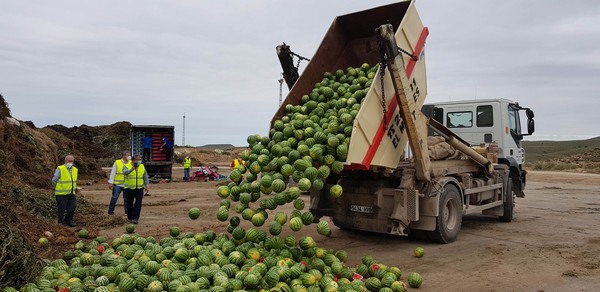 Coexphal-Aproa ha llevado a cabo esta mañana dos actos simbólicos de retirada de melón y sandía en Levante y Poniente almeriense para evidenciar la grave situación de caída de cotizaciones que están atravesando estos dos productos, protagonistas de la campaña de primavera en Almería. En total, se han retirado del mercado más de 150.000 kilos de estas dos frutas, que gozan de una gran calidad, sabor y frescor.