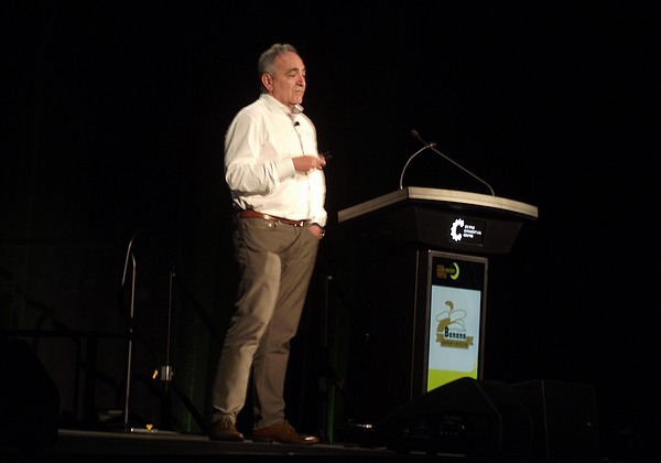 Foto: Michael Simonetta hablando en el reciente Australian Banana Industry Congress en Cairns.
