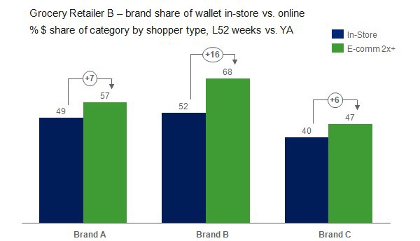 Más de 4 de cada 5 compradores digitales (82 por ciento) empiezan repitiendo compras a la hora de hacer el pedido, según 210 Analytics. Cuanto más tiempo lleva alguien comprando en internet, más probable es que empiece por sus favoritos. Esto también tiene grandes consecuencias, pues se traduce en una mayor lealtad. IRI ha estudiado varias marcas y su cuota del gasto en tiendas físicas y en línea. En cada una de ellas, la lealtad en línea es significativamente más alta.