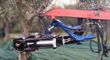 “Estamos constantemente innovando nuestras soluciones y contamos ya con 16 tipos de vibradores, con o sin paraguas, dependiendo del vehículo que los clientes ya tengan en la empresa. Estos equipos se utilizan para la cosecha mecanizada de aceitunas, almendras, pistachos, cerezas, albaricoques, ciruelas u otras frutas colgantes. Ofrecemos una solución para cada tipo de cultivo. Un ejemplo es la pinza vibradora Vortex, cuya patente registrada cubre el concepto de funcionamiento de este sistema vibratorio”, comenta Giacinto Lorusso, ingeniero de la empresa italiana GL2 Costruzioni.
