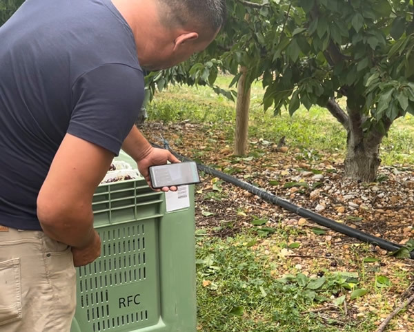 "El método de registro de la cosecha es bastante simple", dice Laurens. "Por ejemplo, en el cultivo de cerezas, solo se requiere un teléfono inteligente y cada empleado debe tener un rollo de pegatinas con códigos de barras personalizados. Tan pronto como un recolector haya llenado una caja, le entrega la caja con la pegatina puesta al responsable, quien escanea el código de barras único y coloca la caja en el palé. El sistema registra que el empleado en cuestión ha recogido una caja entera. Cuando el palé está completo, el responsable escanea la etiqueta única del palé e inmediatamente el gerente ve que se ha completado un palé de cerezas y cuántos kilos por hora ha cosechado cada trabajador".
