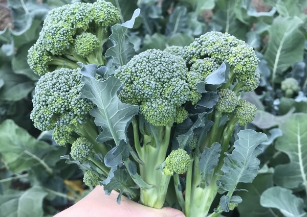 Montebello, variedad verde de bimi, cosechada el 23 de mayo de 2021. Foto: Elisabeth Hodgdon.