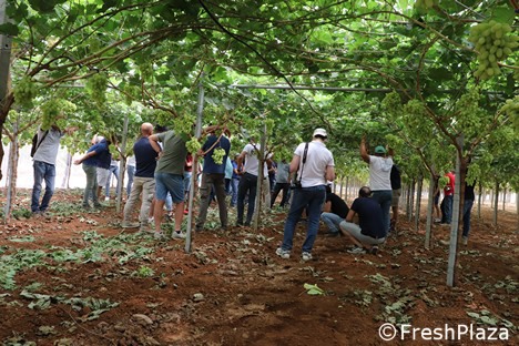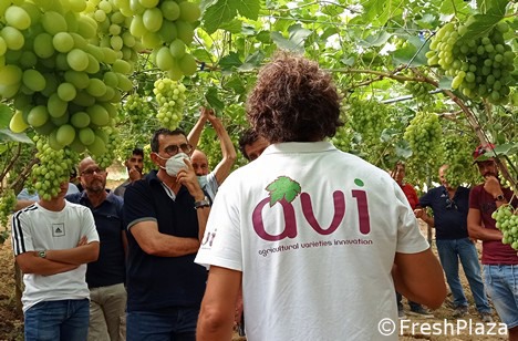 Fueron muchos los que participaron en el Open Field Day organizado por Avi y Gruppo Barbera International (este último, como distribuidor oficial para Sicilia). La jornada se organizó en tres secciones, dos de ellas en el campo para examinar las características de la uva Arra, y en particular de la Arra 30, que se comercializa como Arra Sugar Drop. Estas dos visitas sirvieron para ilustrar, con ejemplos concretos, dos técnicas diferentes para gestionar la planta: la agricultura integrada y la ecológica. Hay diferencias en la estructura, lo cual es importante, ya que esto implica enfoques agronómicos distintos.