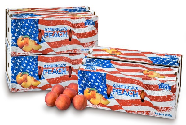 Titan Farms, que produce de melocotones en Carolina del Sur, ya está enviando su producto en cajas con un diseño patriótico llamadas America’s Peach. Estas cajas se envasarán del 23 de junio al 10 de julio y están disponibles en todos Estados Unidos hasta fin de existencias.